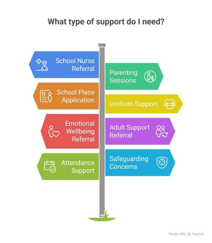 If any parent/carer feels that they need some extra help, the first step is to speak to a member of our team based in Community House.